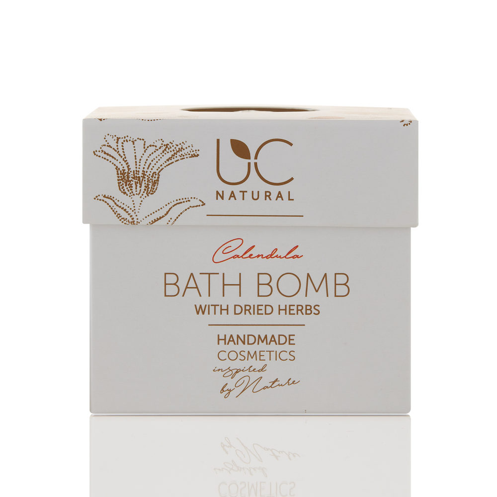 Steigen Sie in die Wanne und geniessen Sie den Feierabend mit dem beruhigenden Aroma des Calendulas. Die Badebombe von UC Natural pflegt und macht die Haut weich. Seine natürlichen Inhaltsstoffe und das Aroma von Calendula bereitet Ihnen ein pures Badevergnügen und die getrockneten Kräutern werden Sie sehr angenehm auf Ihrer Haut spüren.