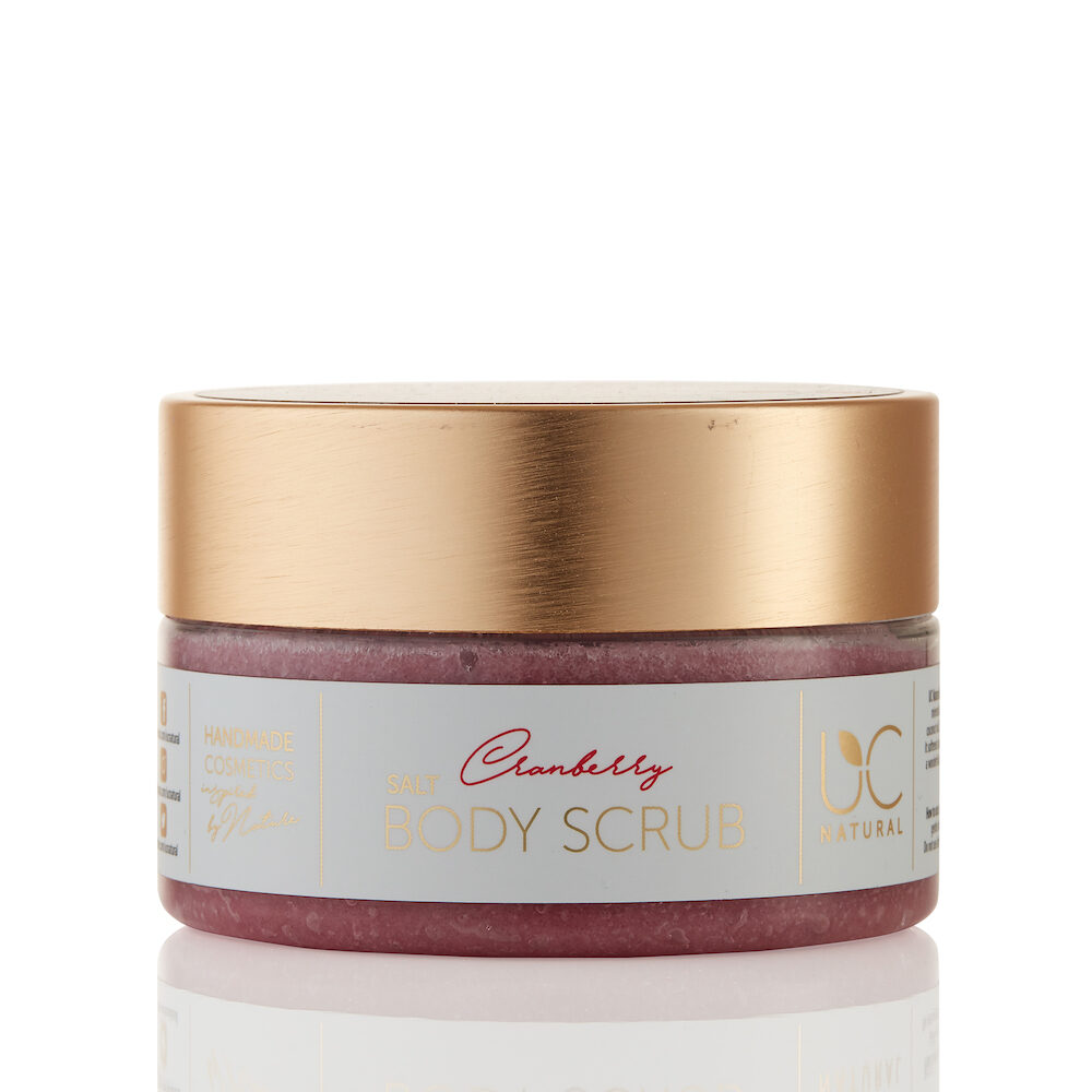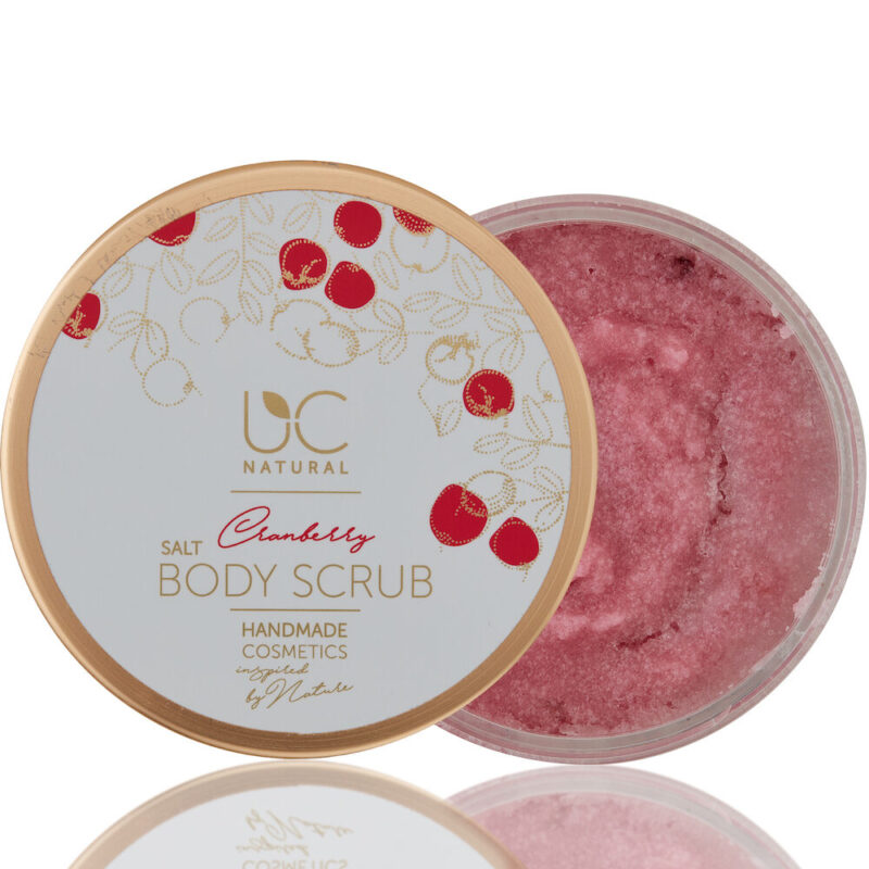 Die Power Beere aus Nordamerika ein Erfrischendes Bodypeeling mit Cranberryaroma, das Handmade Cranberry Peeling von UC Natural besteht aus 100% natürlichen Inhaltsstoffen. Das enthaltene Traubenkernöl bereichert die Haut mit antioxidativem Vitamin E, während die perfekte Kombination aus Kakaobutter und Kokosnuss die Haut nährt und sie jünger aussehen lässt. Die leichte Textur mit dem natürlichen Aroma von Cranberries zieht leicht in die Haut ein und hinterlässt eine seidig – weiche Haut. Zudem peelt das Peeling Ihre Haut ganz sanft und entfernt effektiv abgestorbene Hautzellen und Unreinheiten.