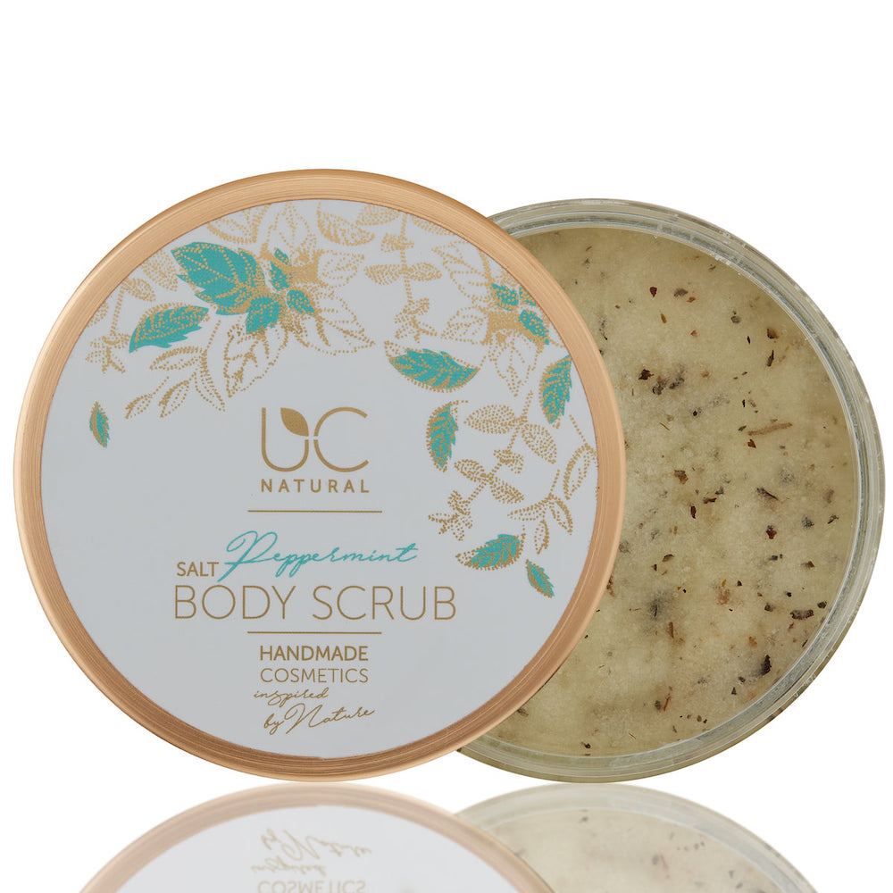 Das Handmade Salz Körperpeeling Pfefferminz von UC Natural ist mit Mineralien aus dem Toten Meer sowie Kokos- und Kakaobutter, Traubenkernöl und Kokosnuss angereichert. Diese natürliche Mischung peelt die Haut sanft, vitalisiert und lässt die Haut strahlend aussehen.
