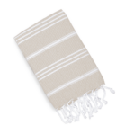 Das Pestemal Cill Out Mini ist die perfekte Ergänzung zu unseren grossen Pestemal. Chill Out Mini ist ein dünnes Pestemal und ein Tuch für alle Fälle in top Qualität. Das Pestemal Chill Out Mini ist sehr saugfähig und weich. Nach Gebrauch trocknet es sehr schnell. Zusammengefaltet benötigt Chill Out Mini äusserst wenig Platz. Bei einem Gesamtgewicht von nur 95 Gramm ist es auch das ideale Tuch für unterwegs. Das Gewicht unseres Bestsellers Chill Out Mini ist eine ausgewogene Symbiose aus all den Vorteilen der klassischen dünnen Tücher und einer langen Lebensdauer. Das Jaliya Chill Out Mini ist als Kinder-Pestemal besonders beliebt. Chill Out Mini ist aus 100% Naturbaumwolle gewebt und frei von reizauslösenden Stoffen. Auch die Farbgebung ist naturbelassen.